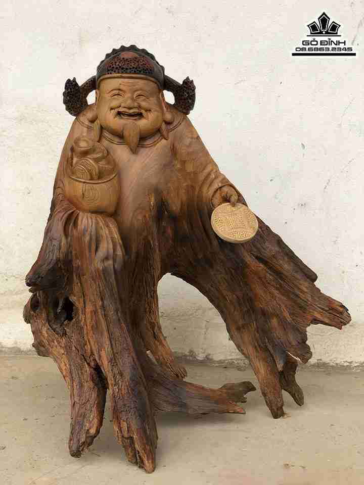 Tượng Thần Tài Gỗ Bách Xanh Cao 60 Ngang 50 Sâu 46 (cm)