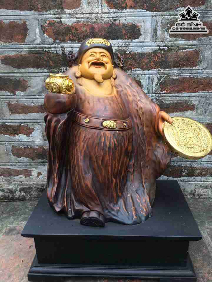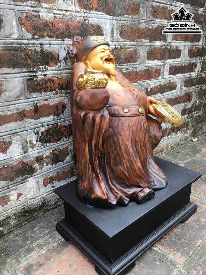 Tượng Thần Tài Gỗ Bách Xanh Cao 41 Ngang 35 Sâu 20 (cm)