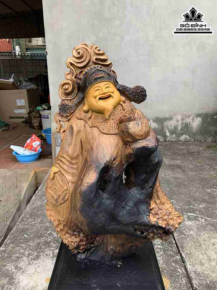 Tượng Thần Tài Gỗ Bách Xanh Cao 58 Ngang 39 Sâu 16 (cm)