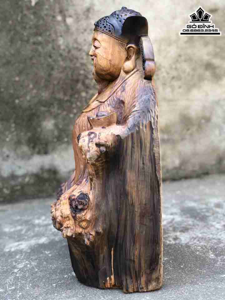 Tượng Thần Tài Gỗ Bách Xanh Cao 51 Ngang 33 Sâu 21 (cm)