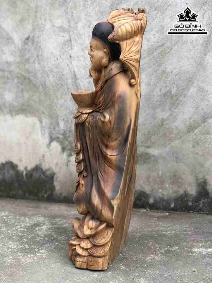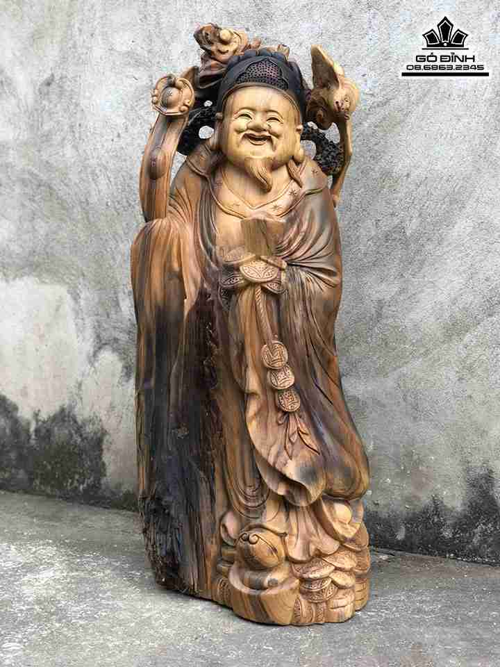 Tượng Thần Tài Gỗ Bách Xanh Cao 73 Ngang 29 Sâu 20 (cm)