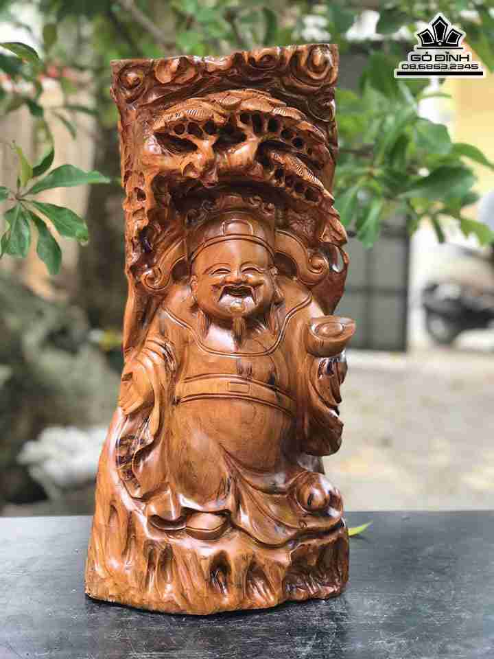 Tượng Thần Tài Gỗ Bách Xanh Cao 52 Ngang 25 Sâu 20 (cm)