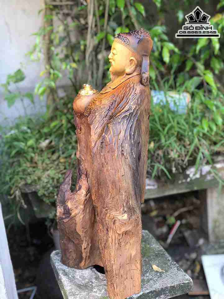 Tượng Thần Tài Gỗ Bách Xanh Cao 58 Ngang 26 Sâu 22 (cm)