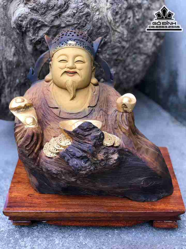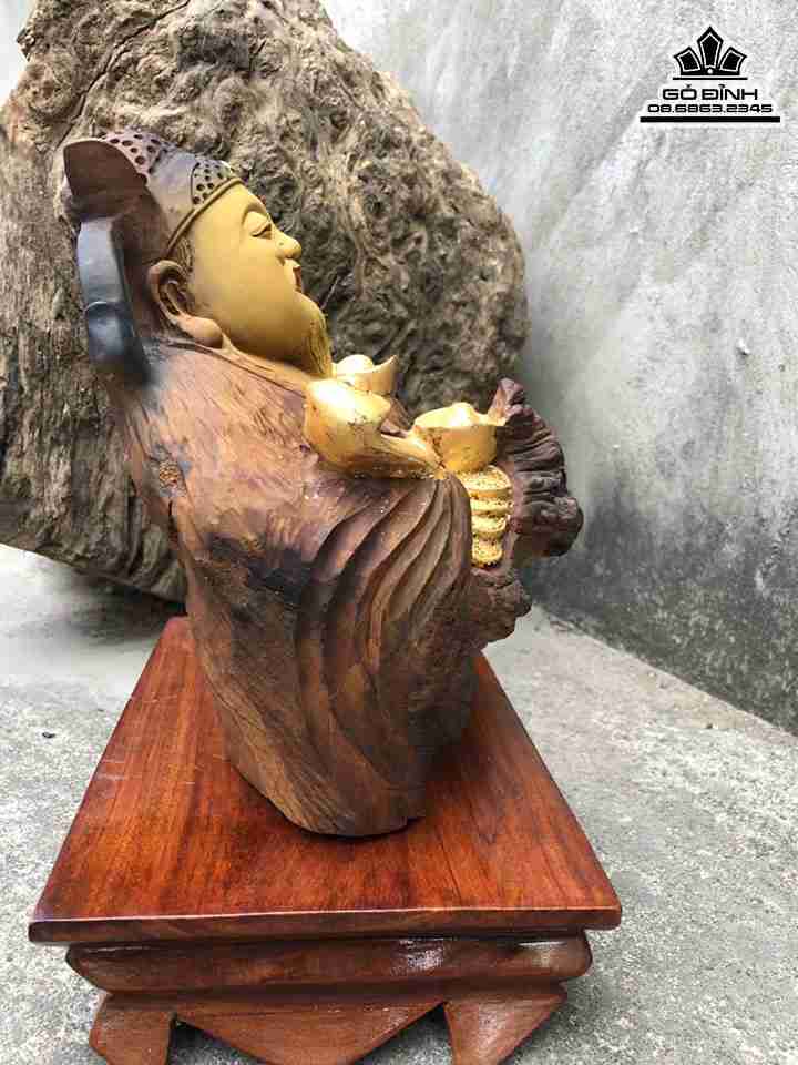 Tượng Thần Tài Gỗ Bách Xanh Cao 24 Ngang 26 Sâu 18 (cm)