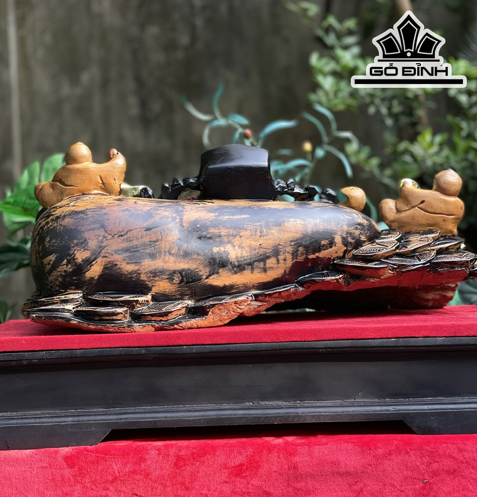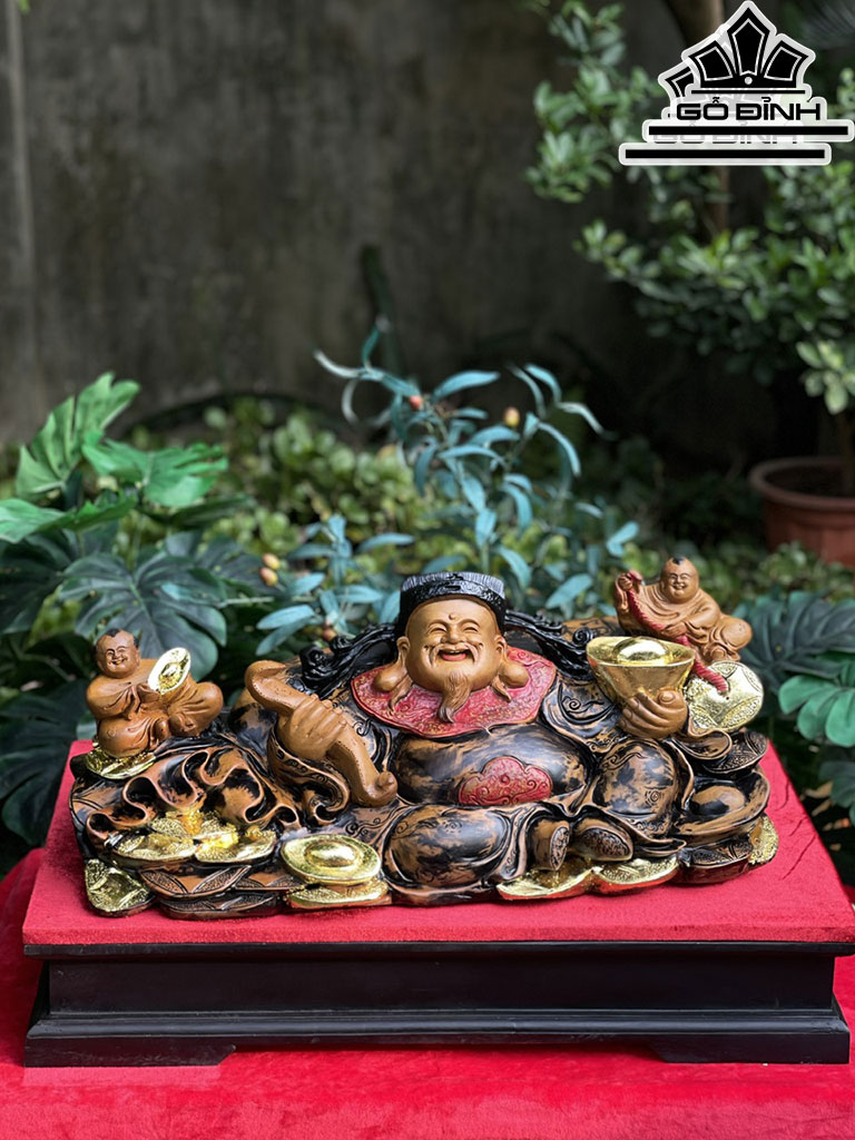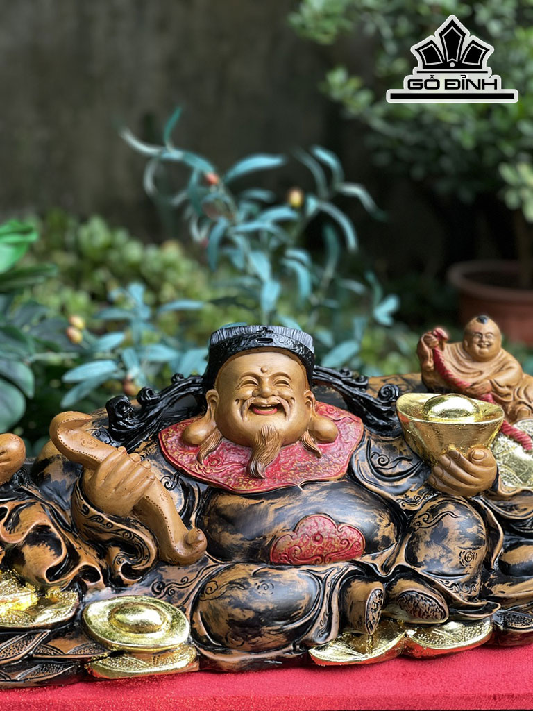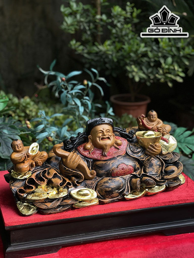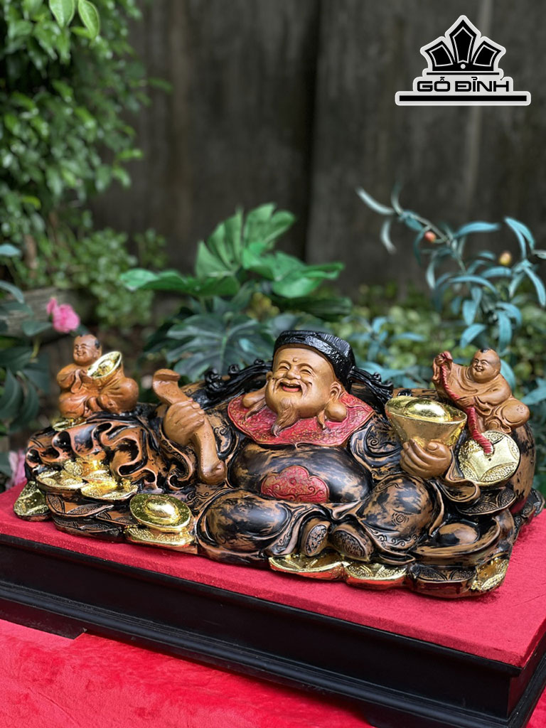 Tượng Thần Tài Gỗ Bách Xanh Cao 23 Ngang 60 Sâu 25 (cm)