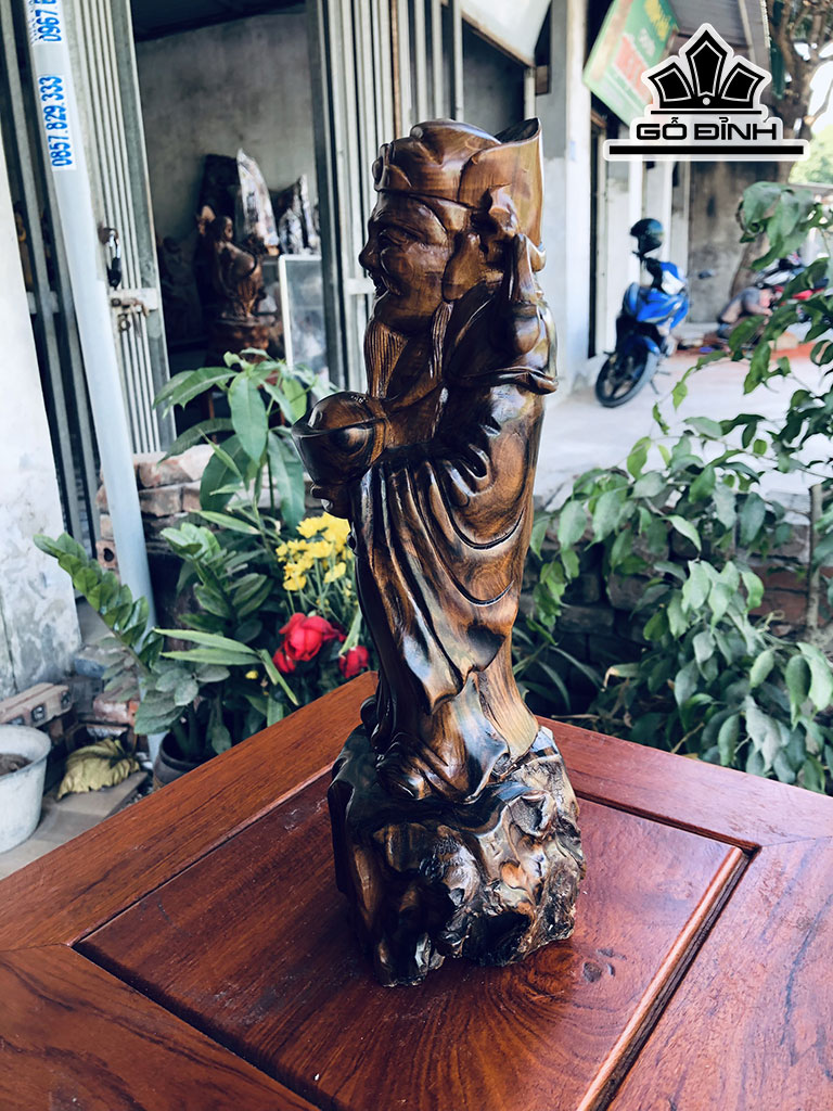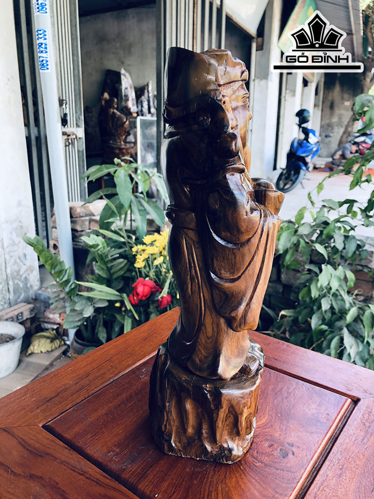 Tượng Thần Tài Gỗ Bách Xanh Cao 32 Ngang 11 Sâu 10 (cm)