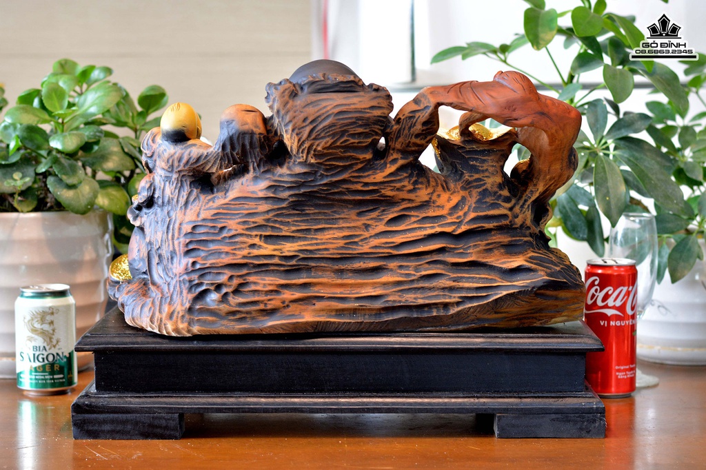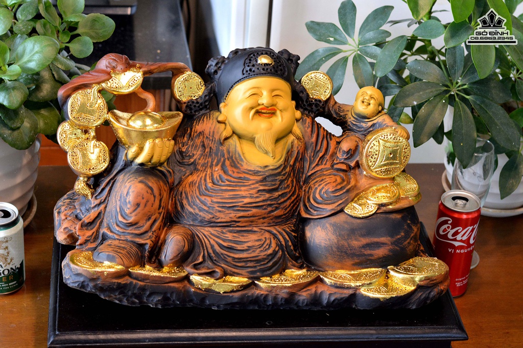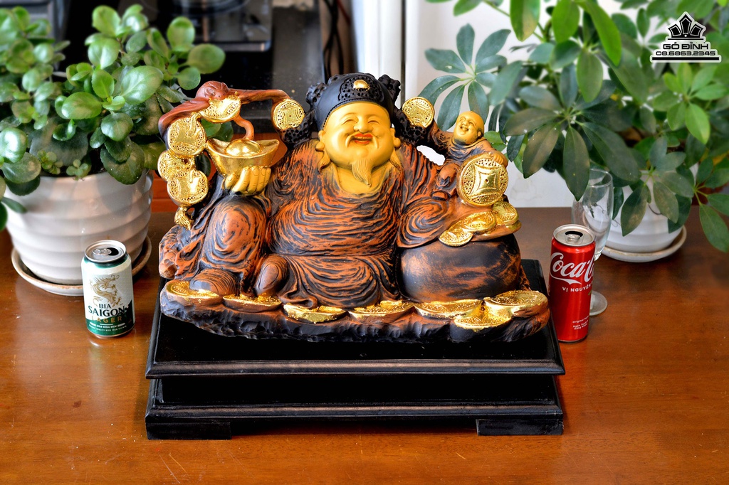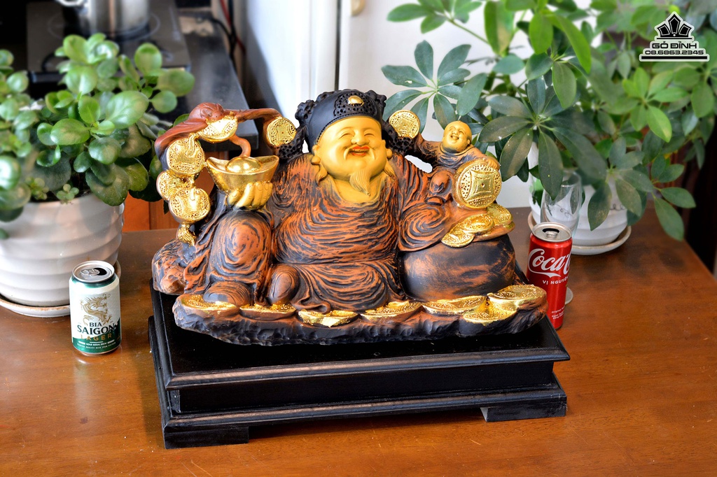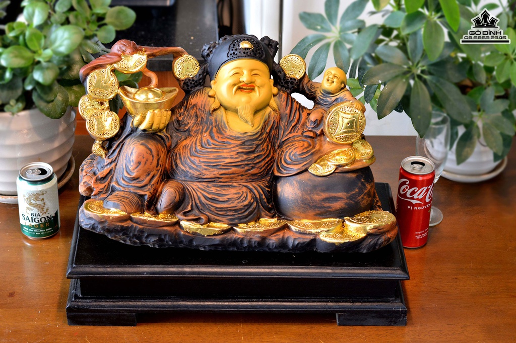 Tượng Thần Tài Gỗ Bách Xanh Cao 36 Ngang 45 Sâu 23 (cm)