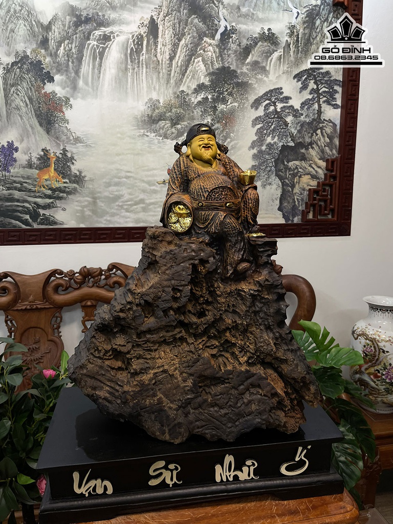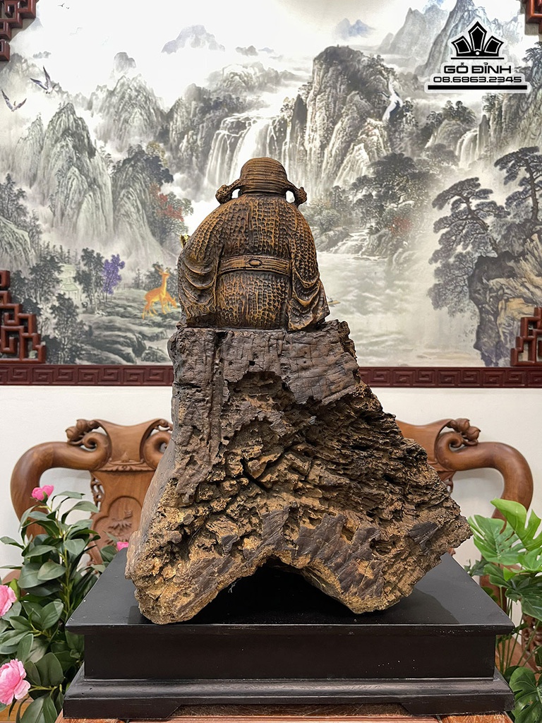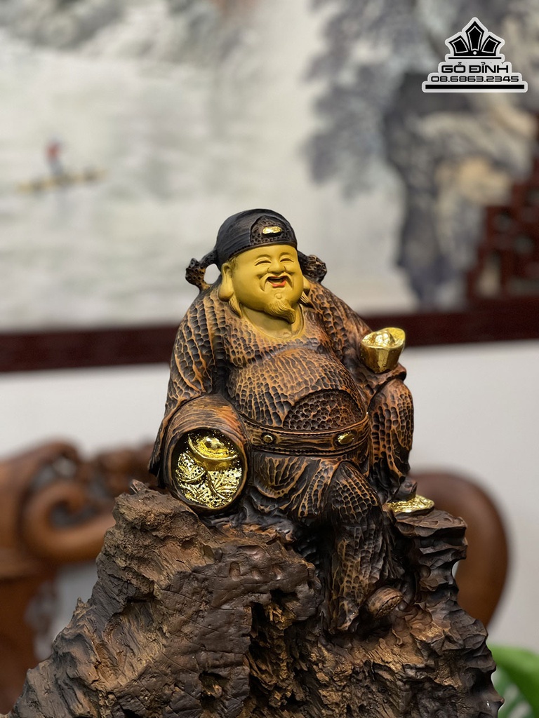 Tượng Thần Tài Gỗ Bách Xanh Cao 50 Ngang 38 Sâu 20 (cm)