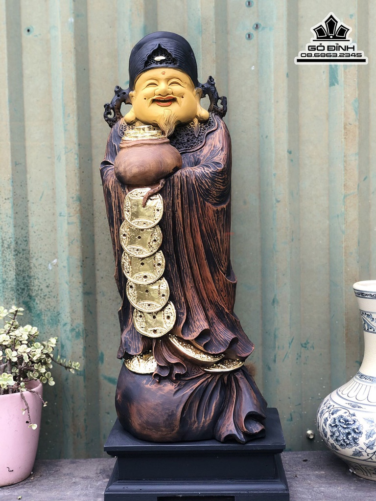 Tượng Thần Tài Gỗ Bách Xanh Cao 51 Ngang 19 Sâu 14 (cm)