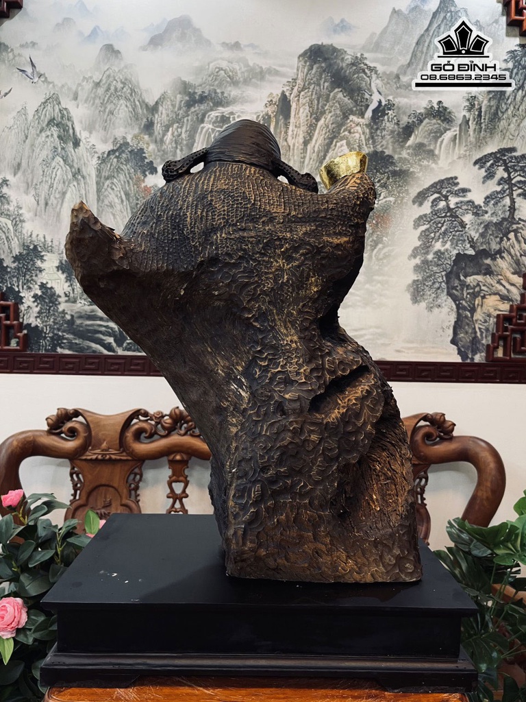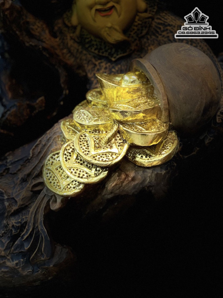 Tượng Thần Tài Gỗ Bách Xanh Cao 60 Ngang 42 Sâu 26 (cm)