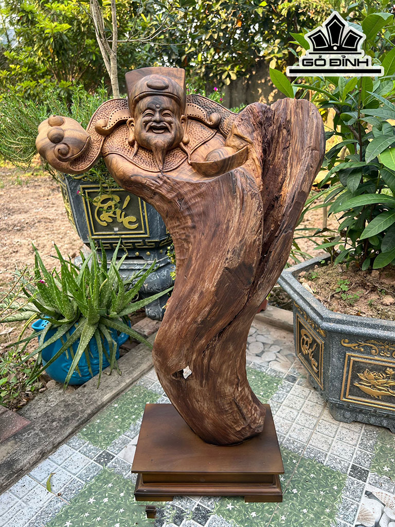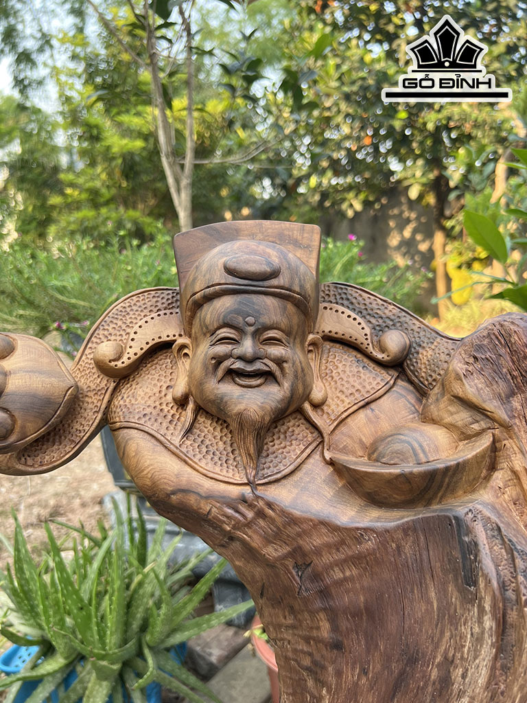 Tượng Thần Tài Gỗ Bách Xanh Cao 71 Ngang 45 Sâu 19 (cm)