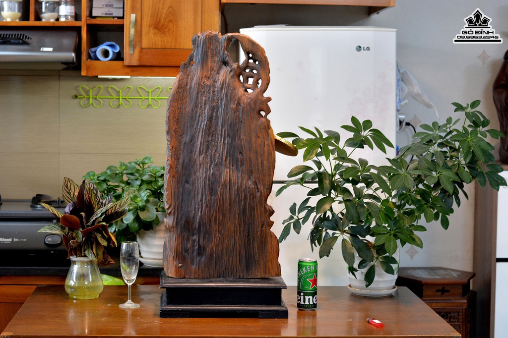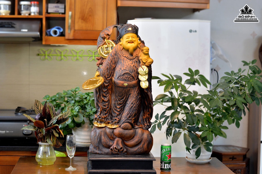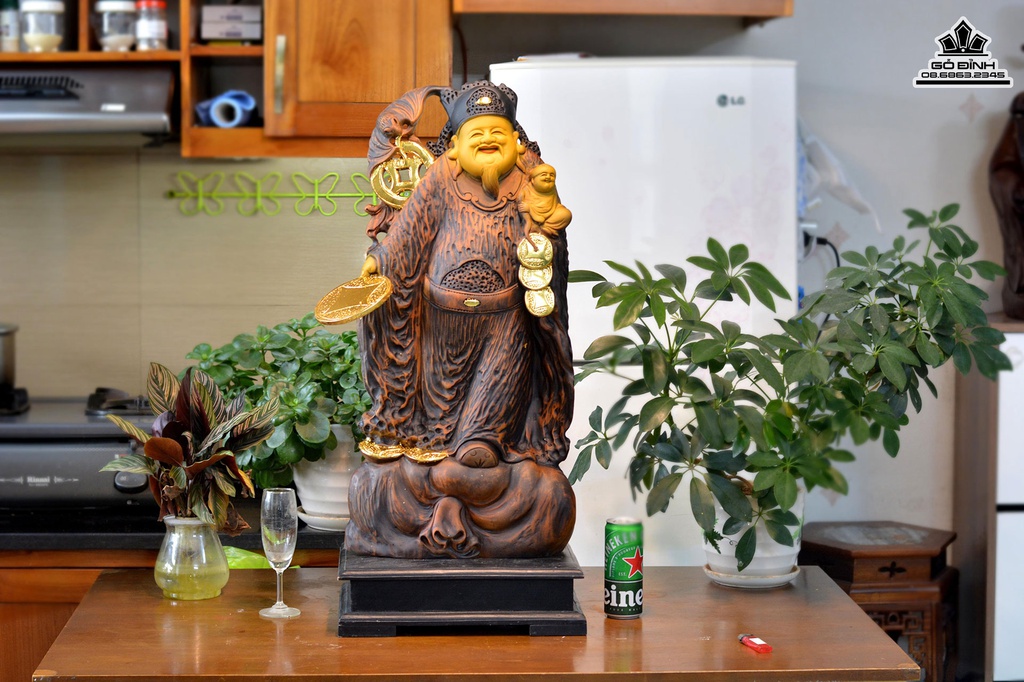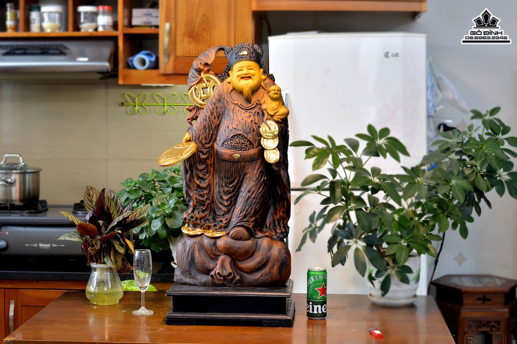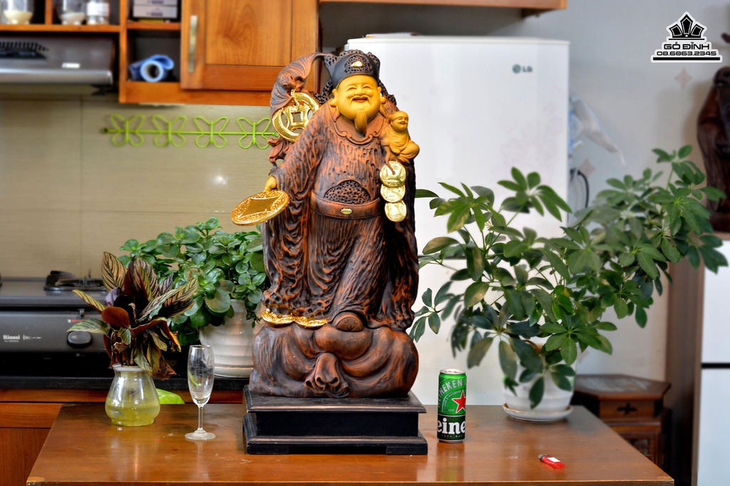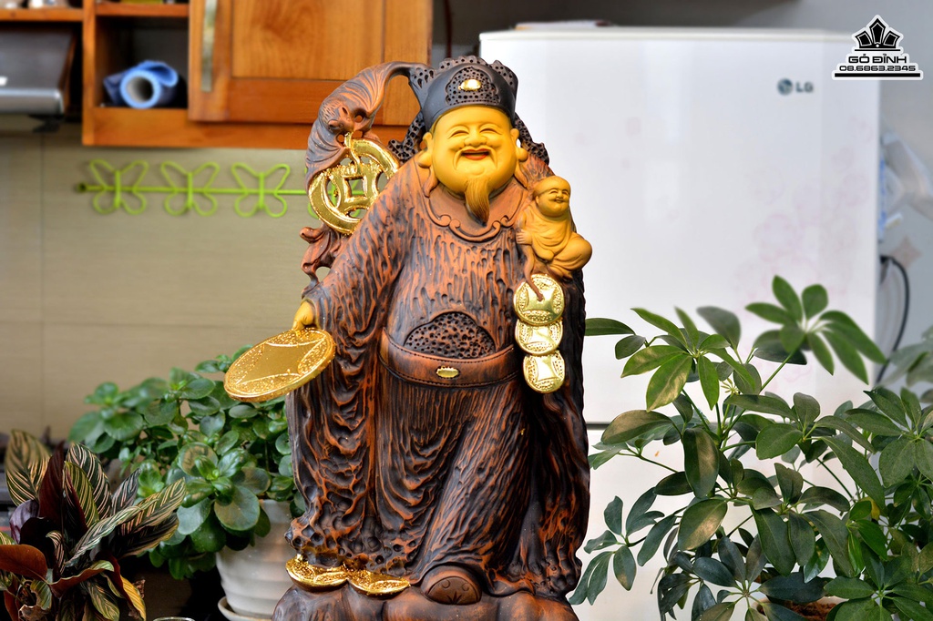 Tượng Thần Tài Gỗ Bách Xanh Cao 82 Ngang 33 Sâu 11 (cm)