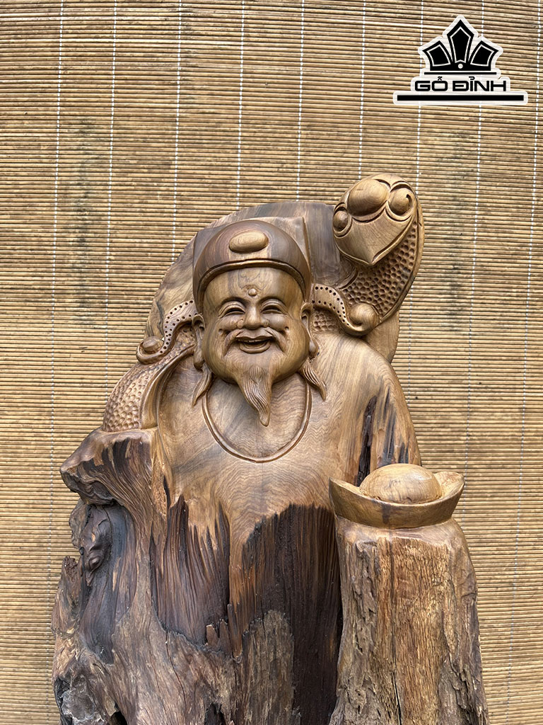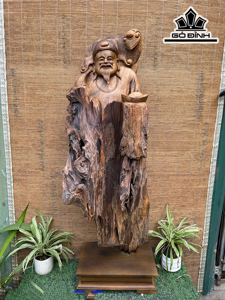 Tượng Thần Tài Gỗ Bách Xanh Cao 85 Ngang 29 Sâu 23 (cm)