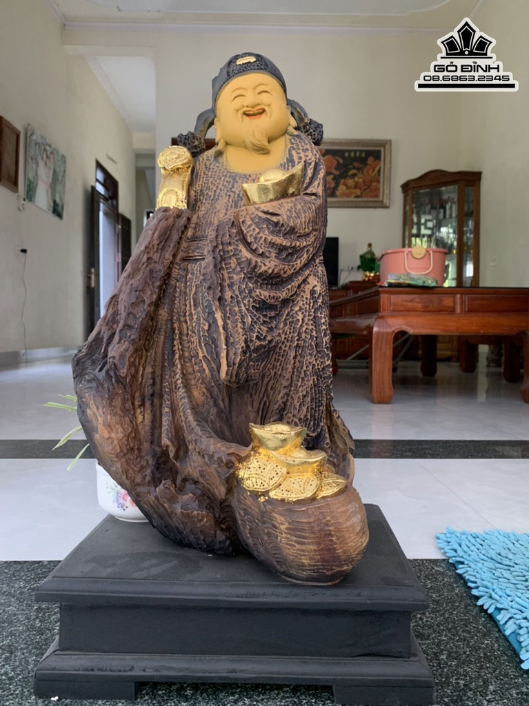 Tượng Thần Tài Gỗ Bách Xanh Cao Cả Kỷ 66 Ngang 35 Sâu 28 (cm)