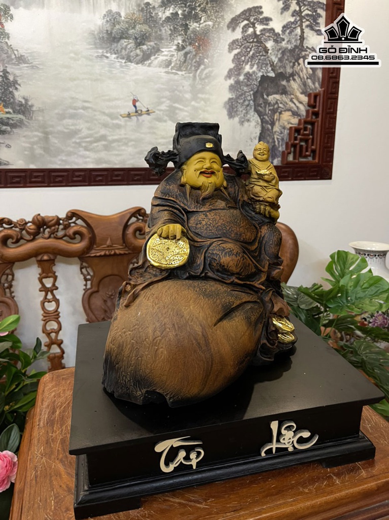 Tượng Thần Tài Gỗ Bách Xanh Liền Khối