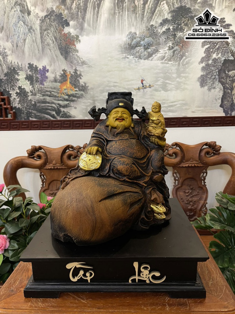 Tượng Thần Tài Gỗ Bách Xanh Liền Khối