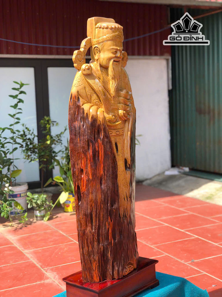 Tượng Thần Tài Gỗ Dổi Cao Cả Kỷ 143 Riêng Tượng Cao 129 Ngang 48 Sâu 25 (cm)