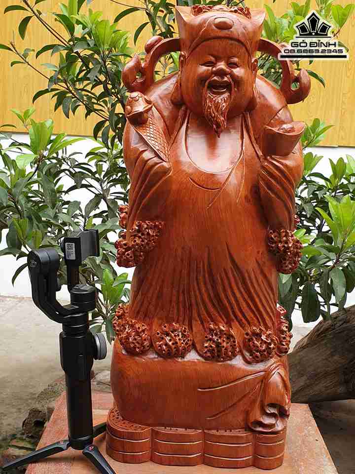 Tượng Thần Tài Gỗ Hương Cao 73 Rộng 30 Sâu 17 (cm)