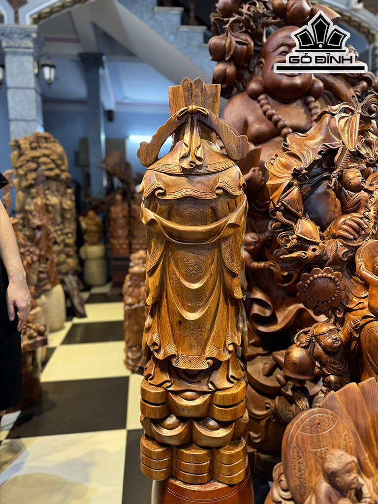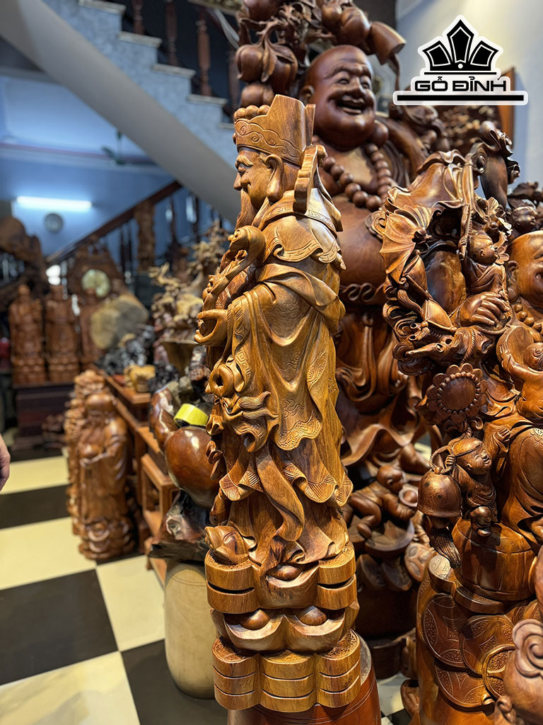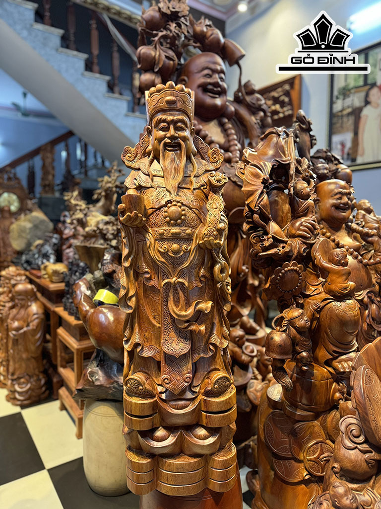 Tượng Thần Tài Gỗ Hương Cao 110 Ngang 32 Sâu 28 (cm)