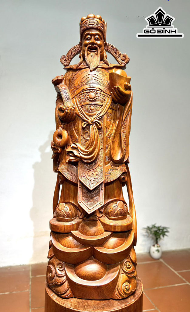 Tượng Thần Tài Gỗ Hương Cao 120 Ngang 40 Sâu 30 (cm)