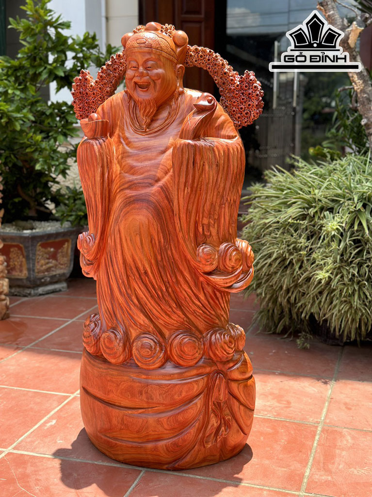Tượng Thần Tài Gỗ Hương Cao 140 Ngang 63 Sâu 38 (cm)