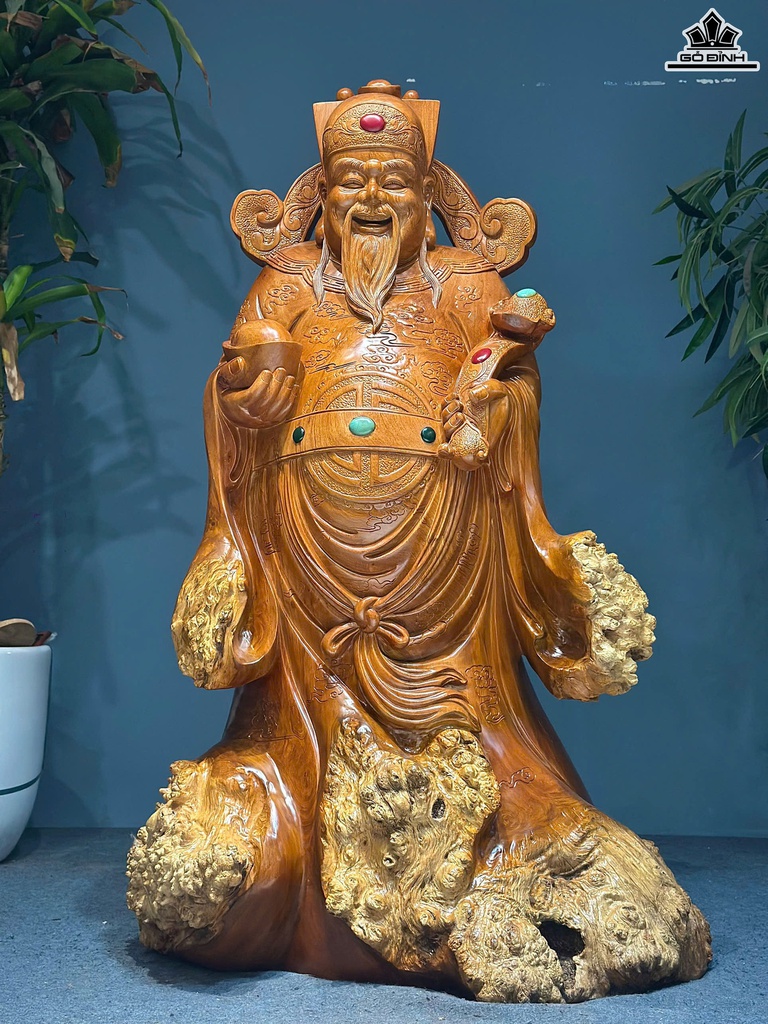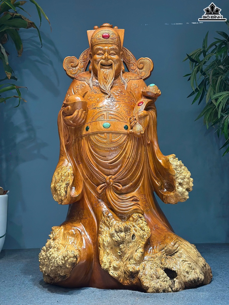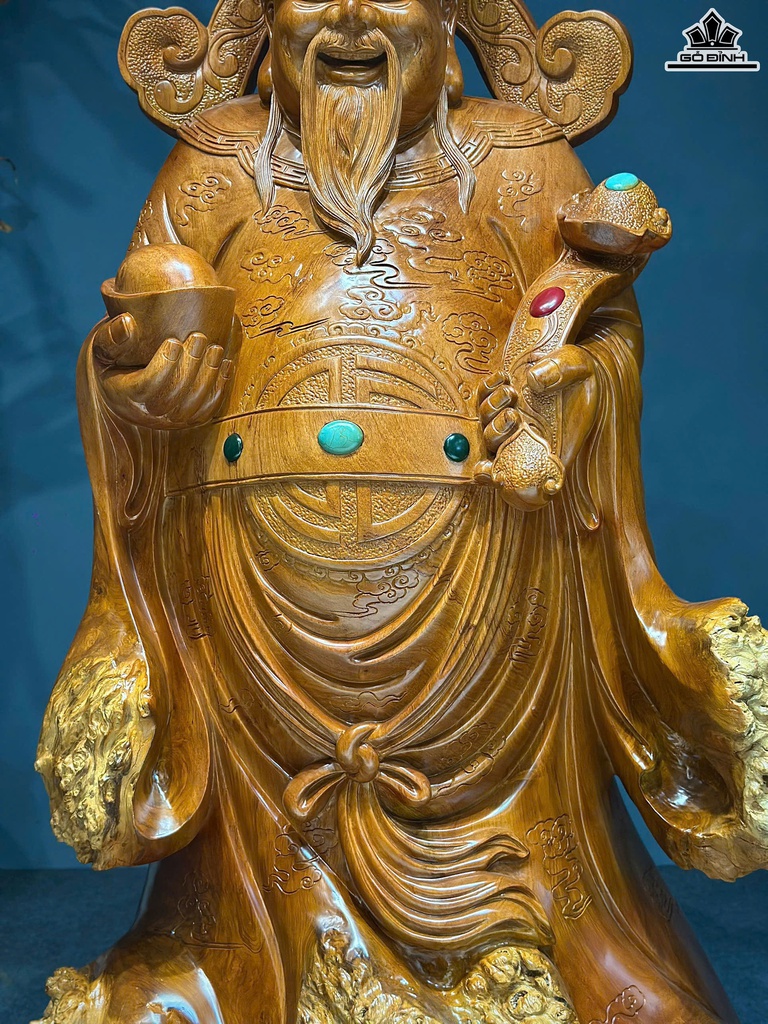 Tượng Thần Tài Gỗ Hương Cao 145 Ngang 88 Sâu 60 (cm)