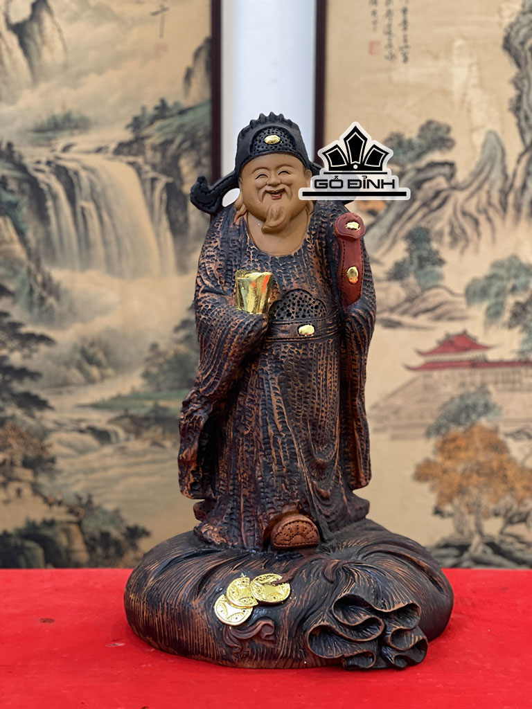 Tượng Thần Tài Gỗ Hương Cao 56 Ngang 36 Sâu 26 (cm)