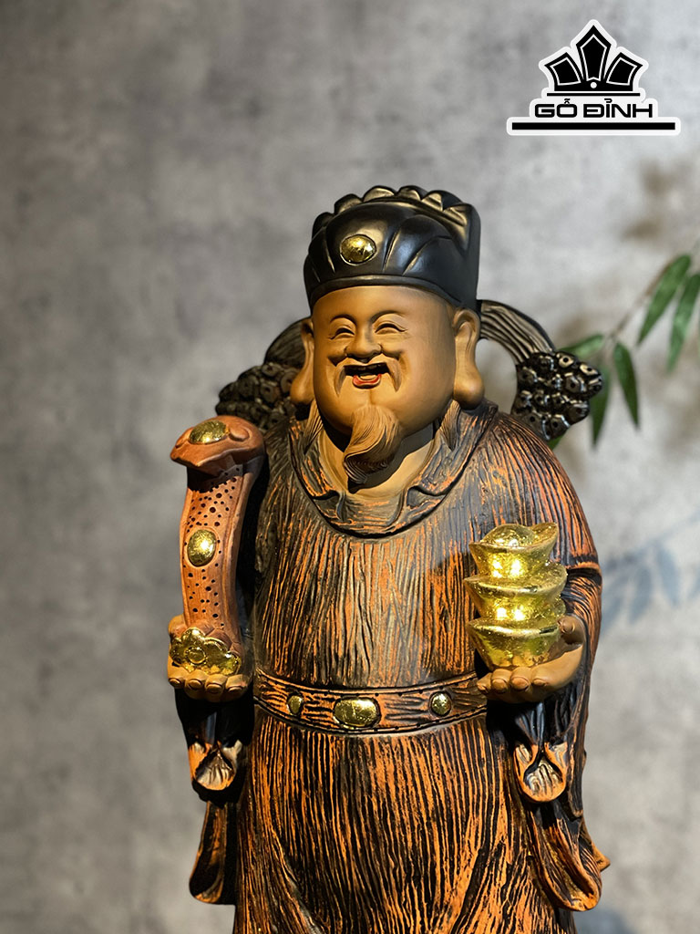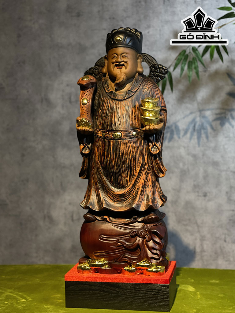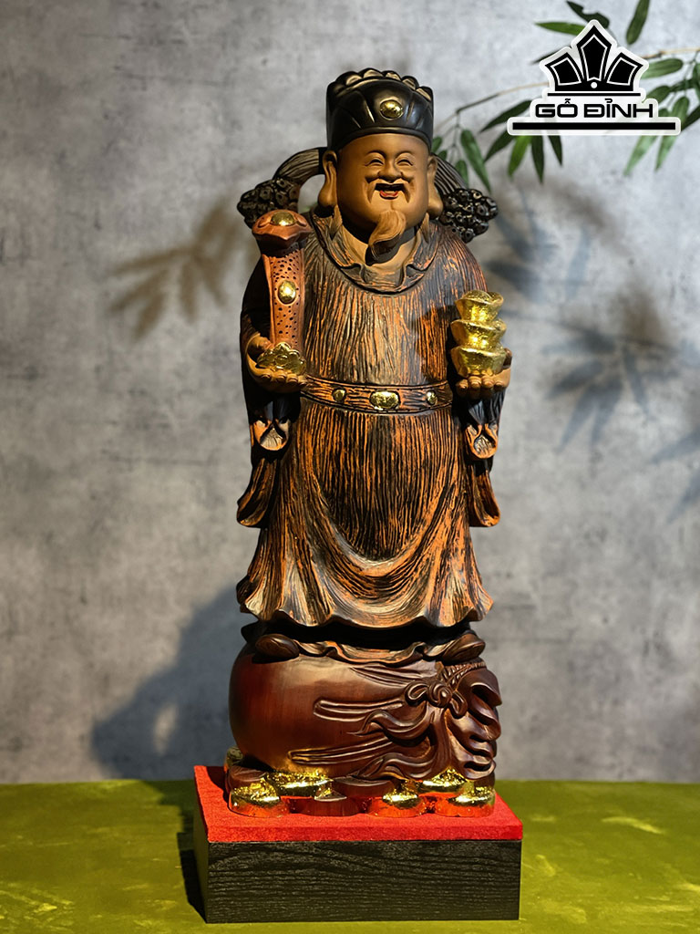 Tượng Thần Tài Gỗ Hương Cao 70 Ngang 25 Sâu 18 (cm)