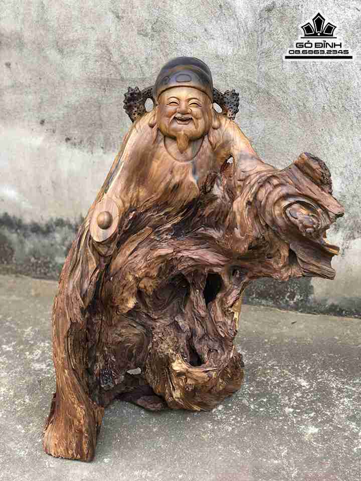 Tượng Thần Tài Gỗ Lũa Bách Xanh Cao 66 Rộng 48 Dày 21 (cm)