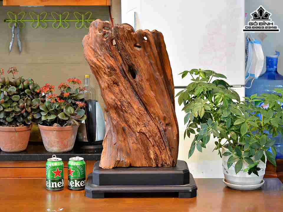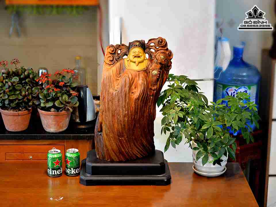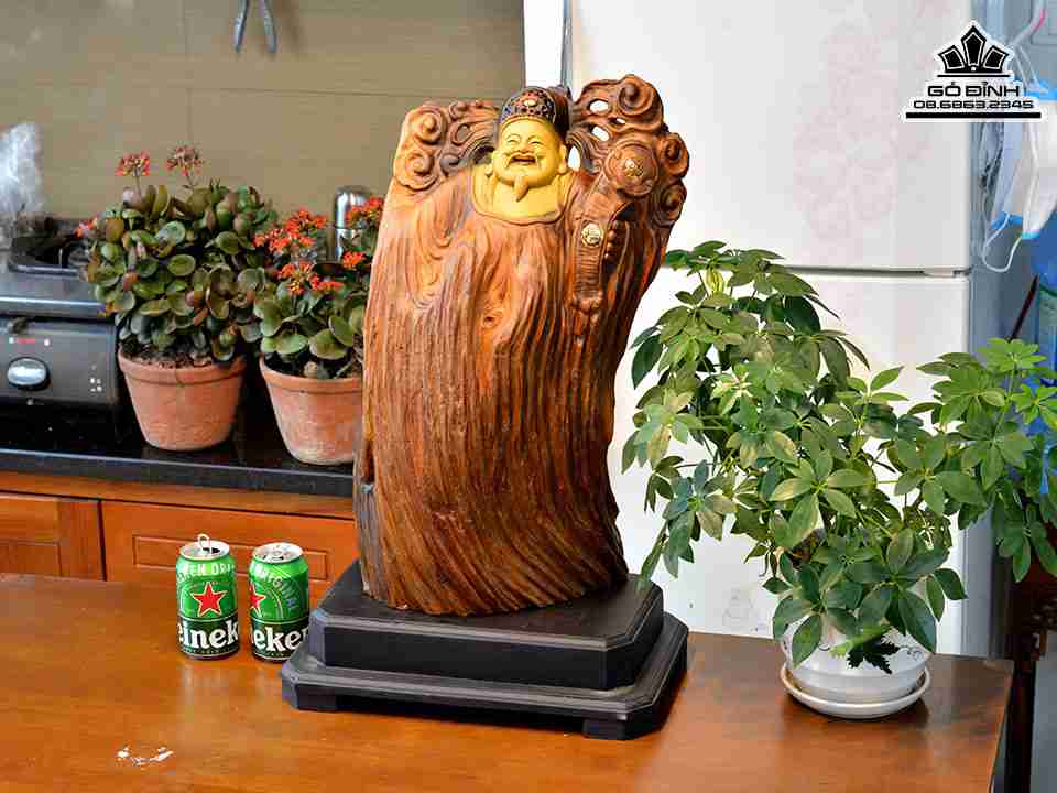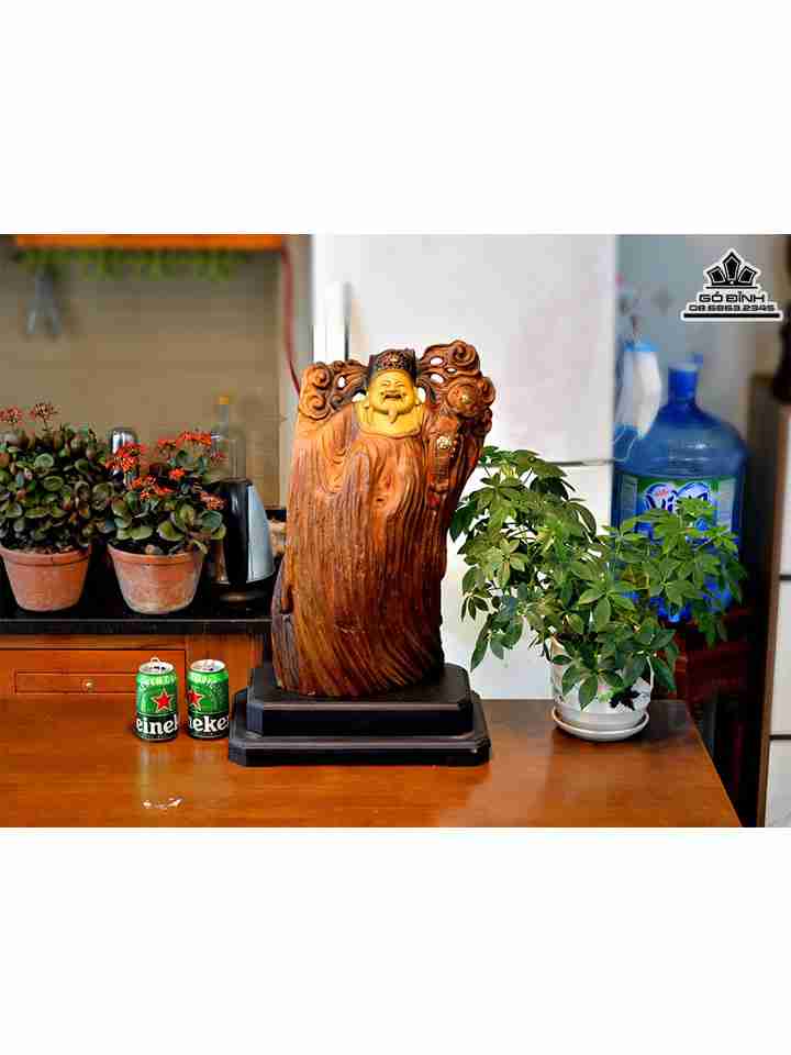 Tượng Thần Tài Gỗ Lũa Bách Xanh Cao 52 Ngang 30 Dày 16 (cm)