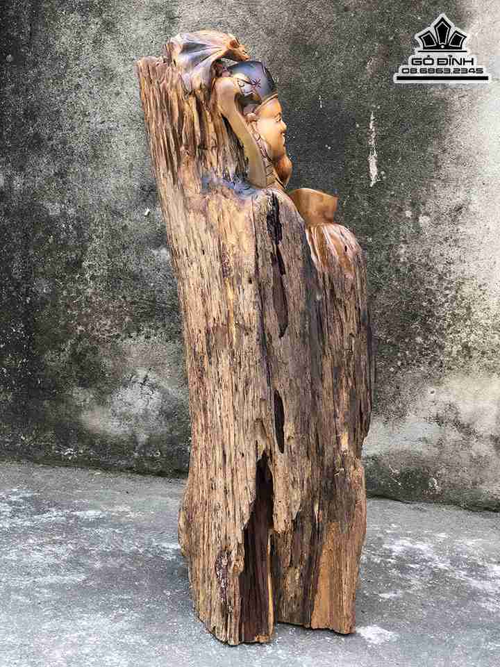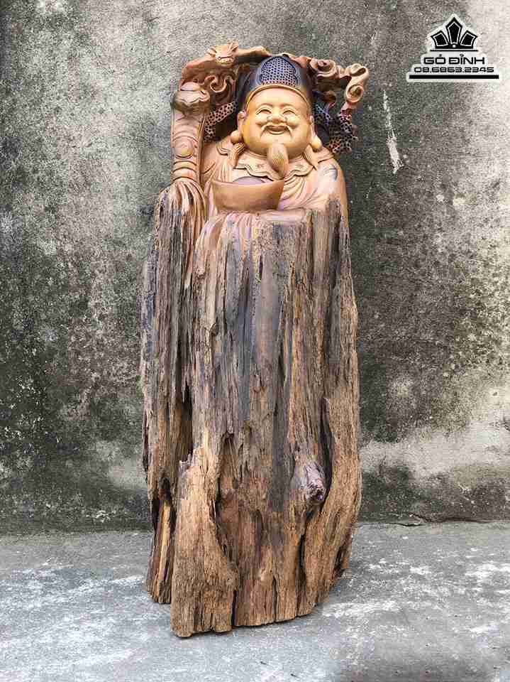 Tượng Thần Tài Gỗ Lũa Bách Xanh Cao 81 Ngang 33 Sâu 29 (cm)