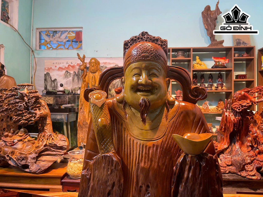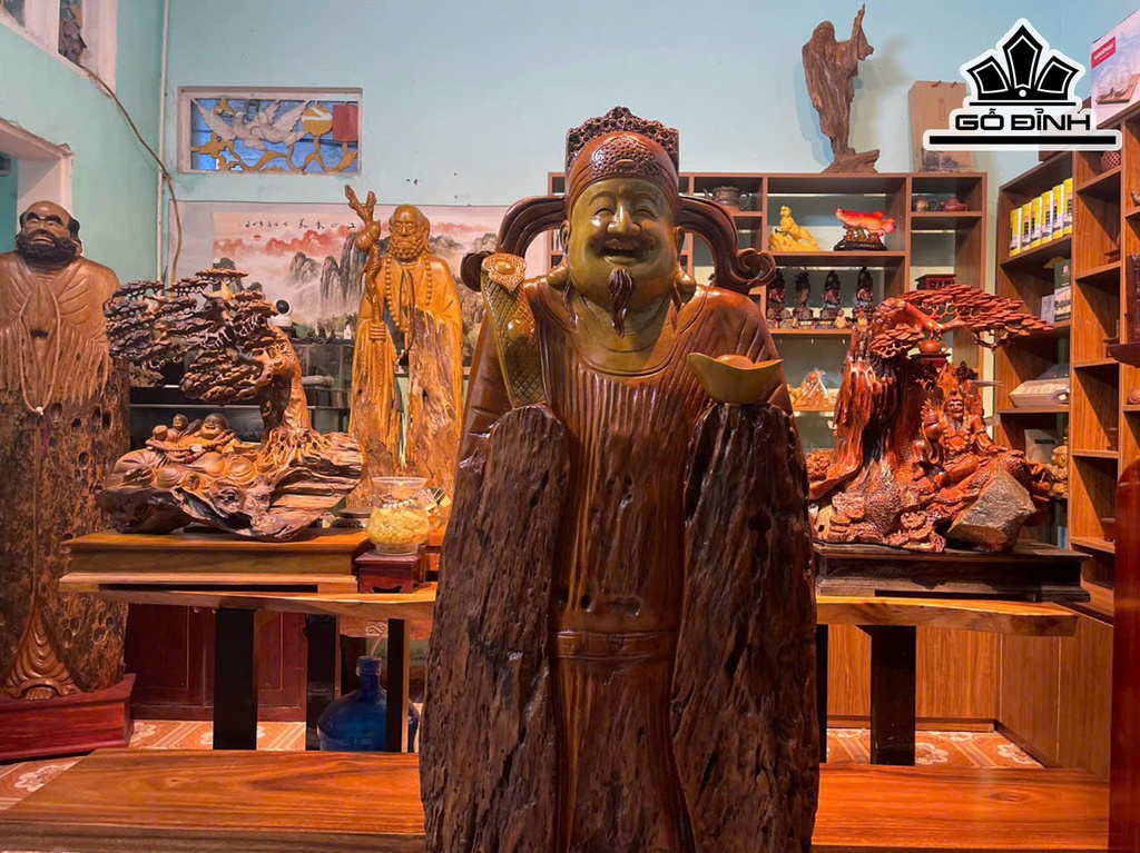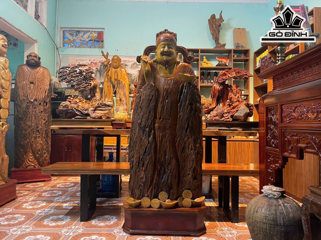 Tượng Thần Tài Gỗ Lũa Dổi Cao 142 Ngang 66 Sâu 26 (cm)
