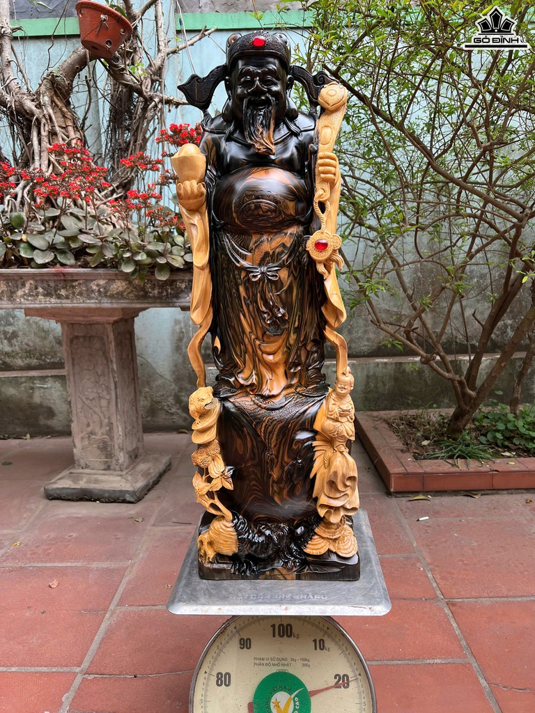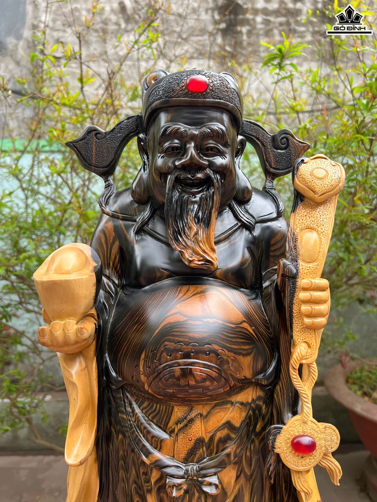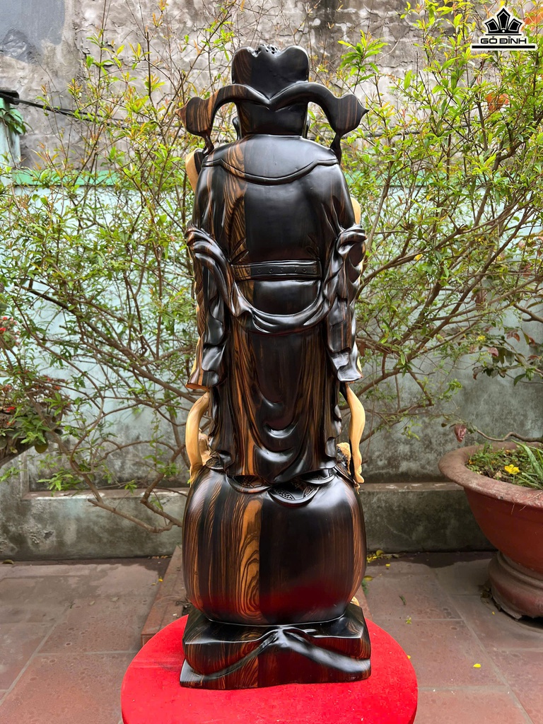 Tượng Thần Tài Gỗ Mun Hoa Cao 82 Ngang 26 Sâu 15 (cm)