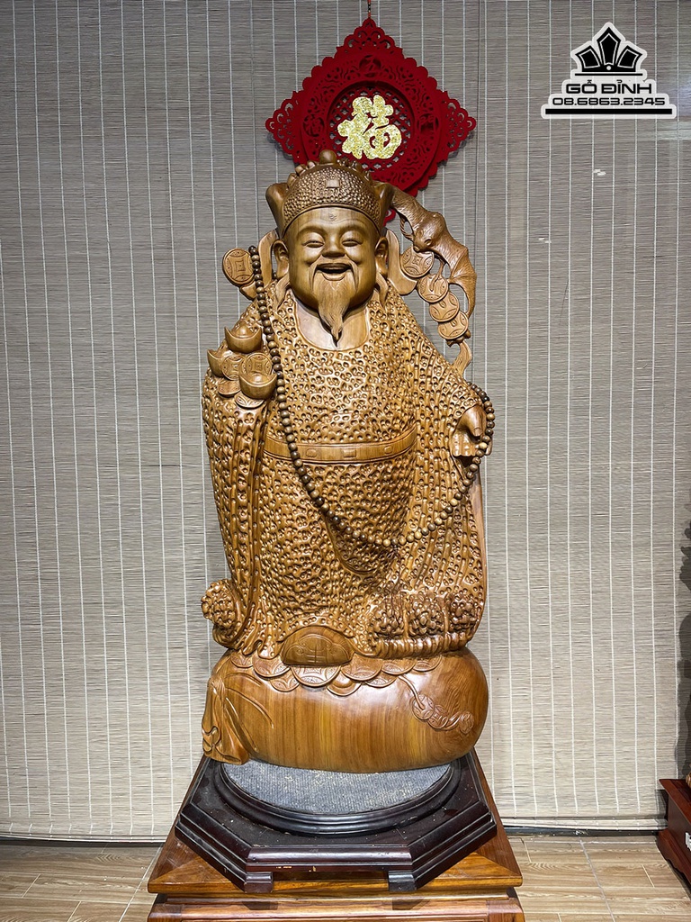 Tượng Thần Tài Gỗ Ngọc Am Cao 100 Ngang 50 Sâu 19 (cm)