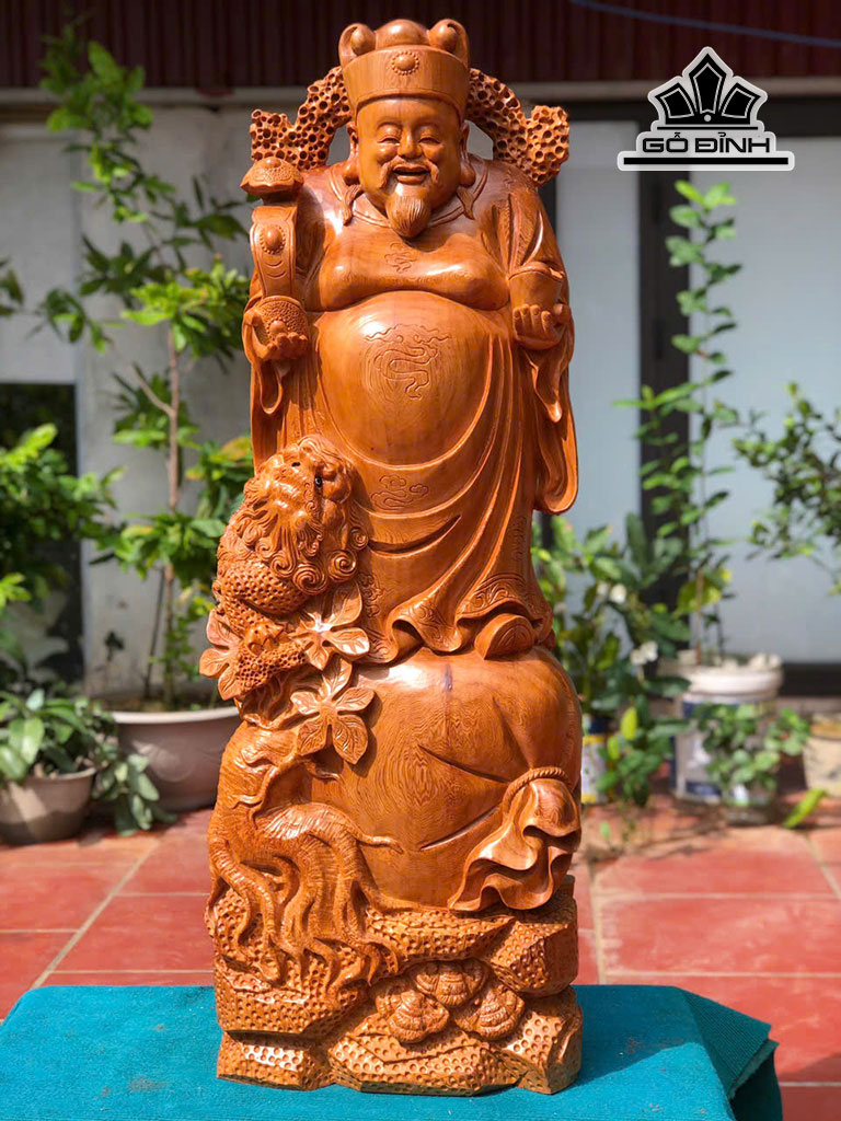 Tượng Thần Tài Gỗ Ngọc Am Cao 118 Ngang 45 Sâu 28 (cm)