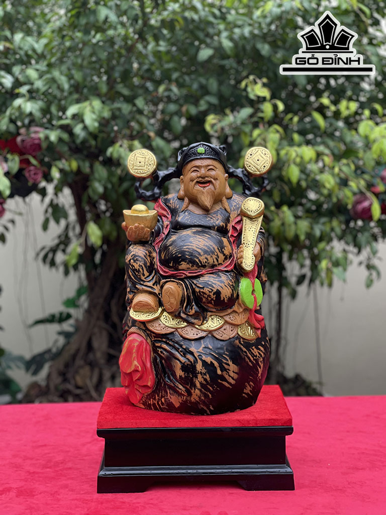 Tượng Thần Tài Gỗ Ngọc Am Cao 45 Ngang 26 Sâu 22 (cm)