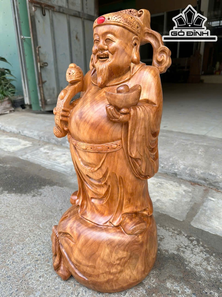 Tượng Thần Tài Gỗ Ngọc Am Cao 58 Ngang 22 Sâu 22 (cm)