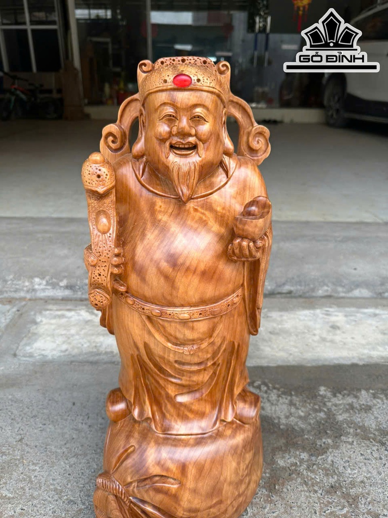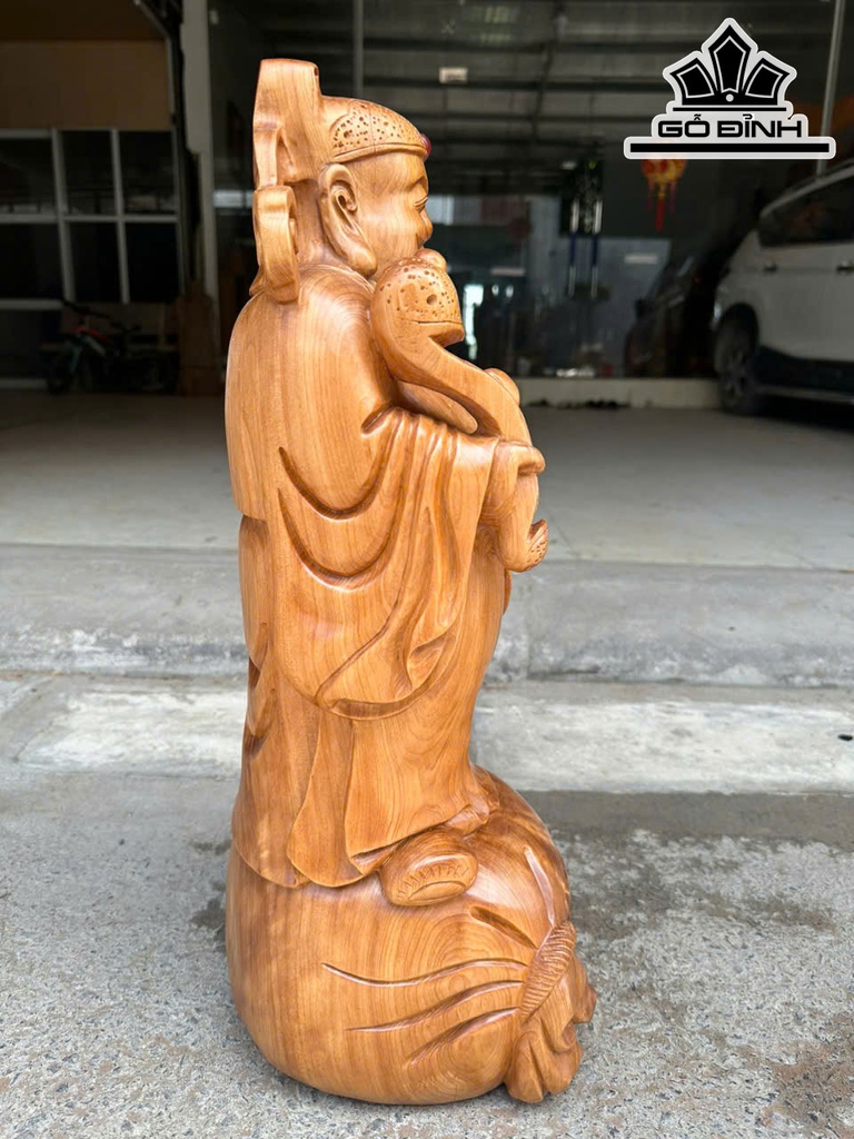 Tượng Thần Tài Gỗ Ngọc Am Cao 58 Ngang 22 Sâu 22 (cm)