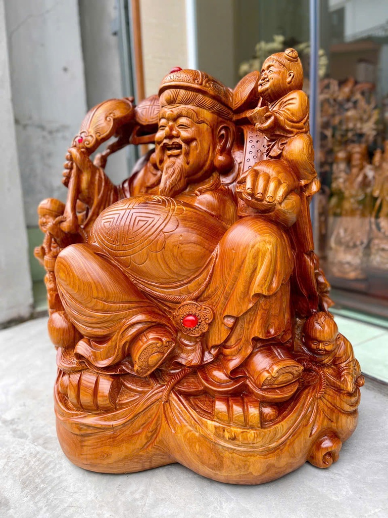 Tượng Thần Tài Gỗ Ngọc Am Cao 60 Ngang 57 Sâu 35 (cm)