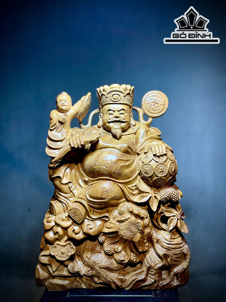 Tượng Thần Tài Gỗ Ngọc Am Cao 61 Ngang 45 Sâu 21 (cm)