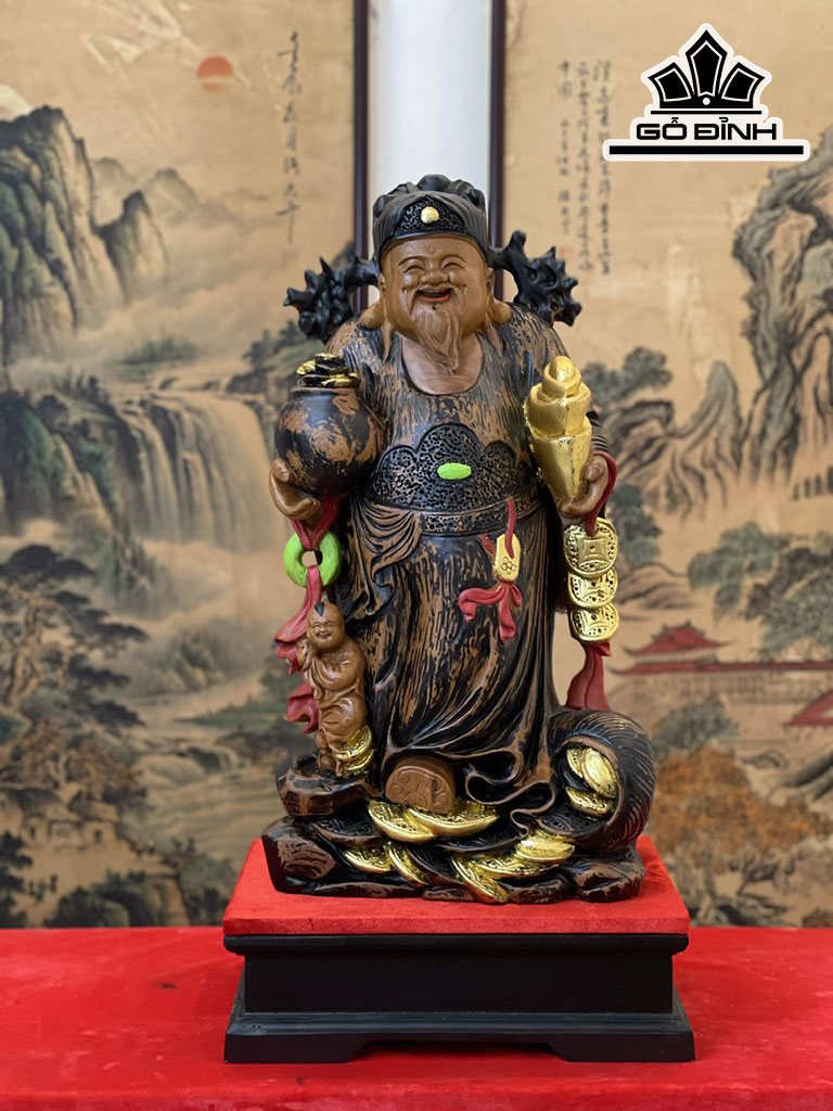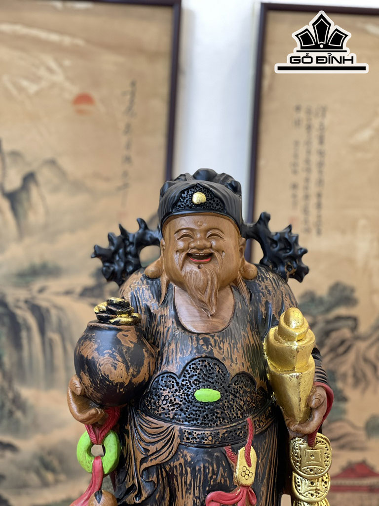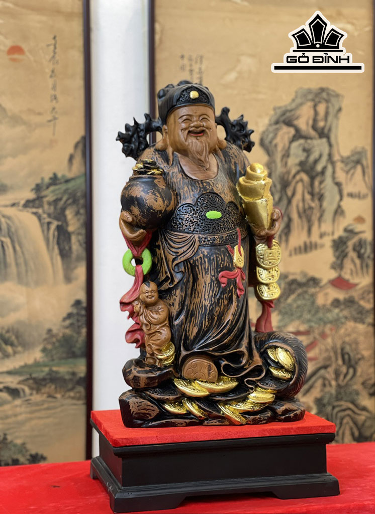 Tượng Thần Tài Gỗ Ngọc Am Cao 63 Ngang 35 Sâu 25 (cm)