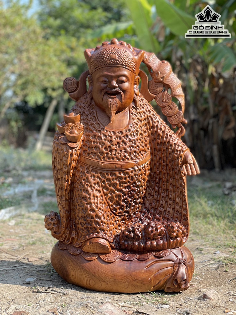 Tượng Thần Tài Gỗ Ngọc Am Cao 67 Ngang 40 Sâu 22 (cm)