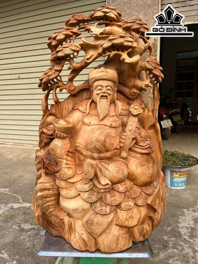 Tượng Thần Tài Gỗ Ngọc Am Cao 72 Ngang 48 Sâu 26 (cm)