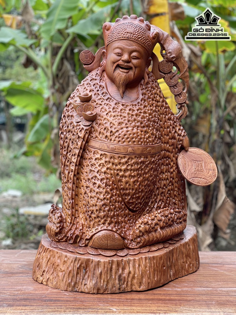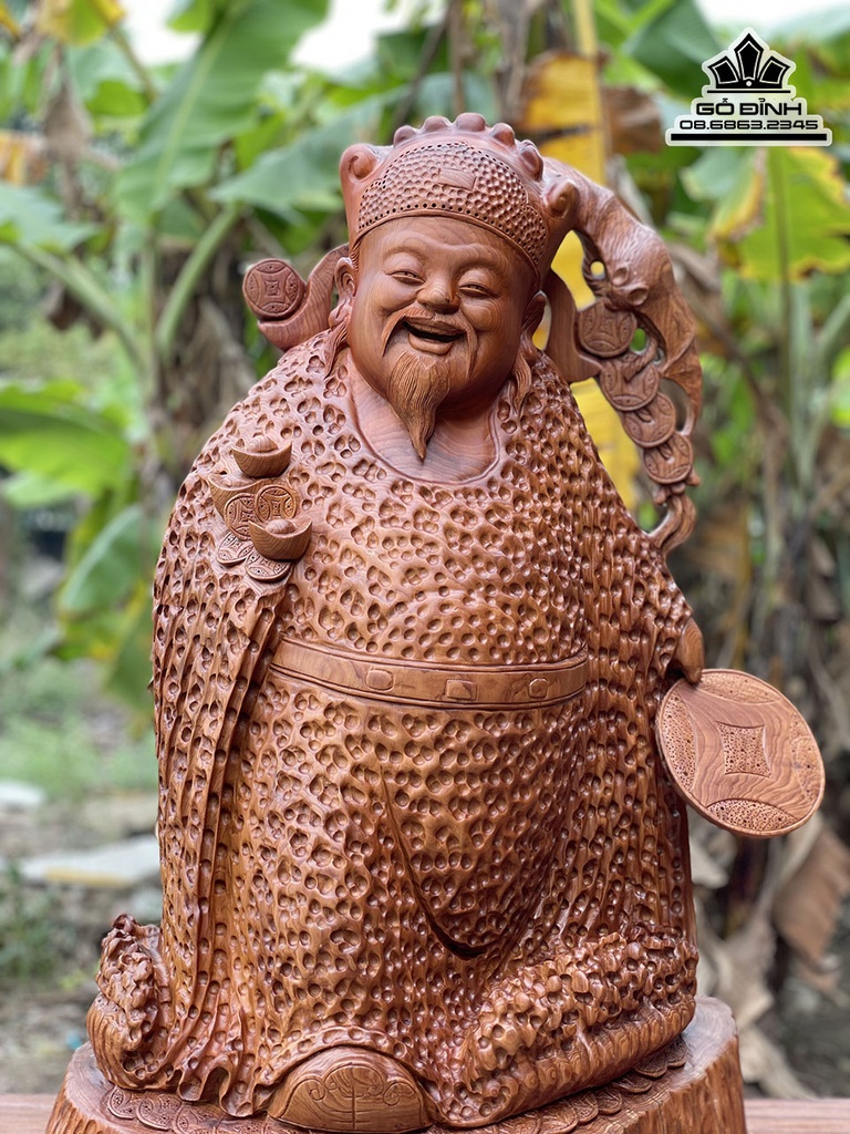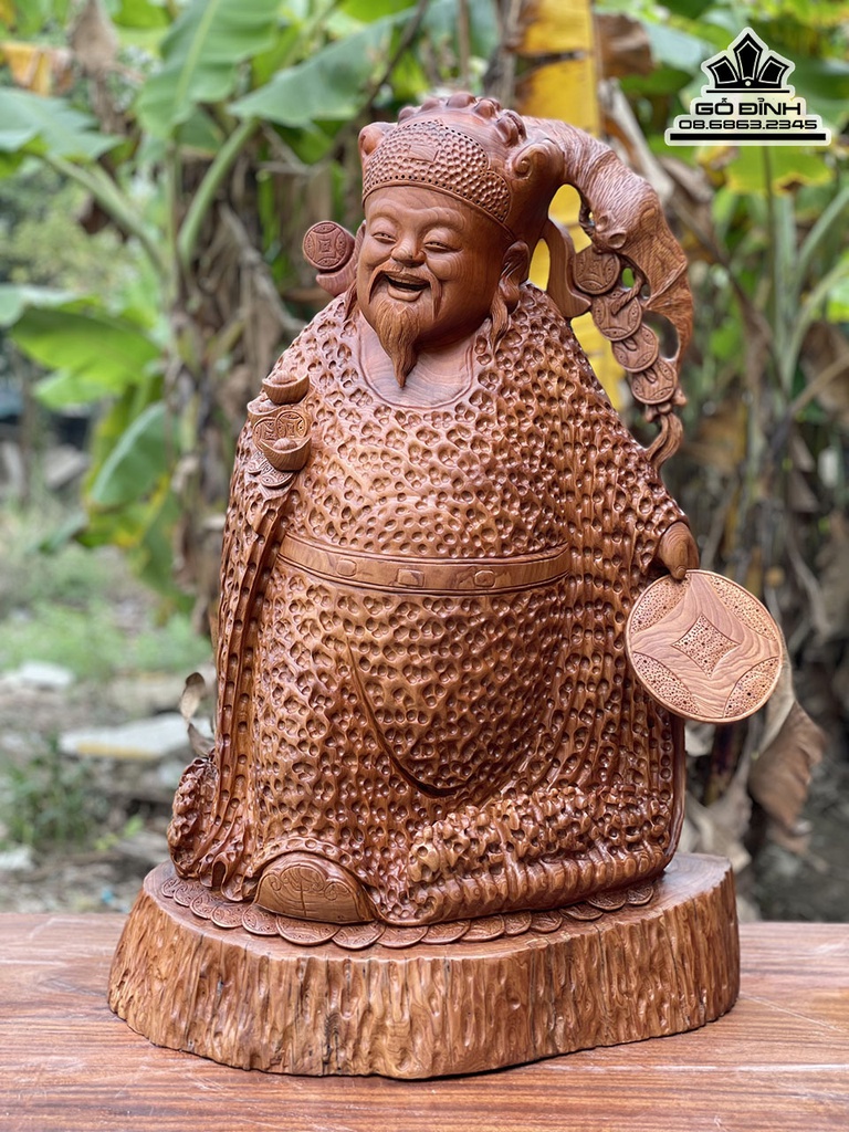 Tượng Thần Tài Gỗ Ngọc Am Cao 75 Ngang 50 Sâu 30 (cm)