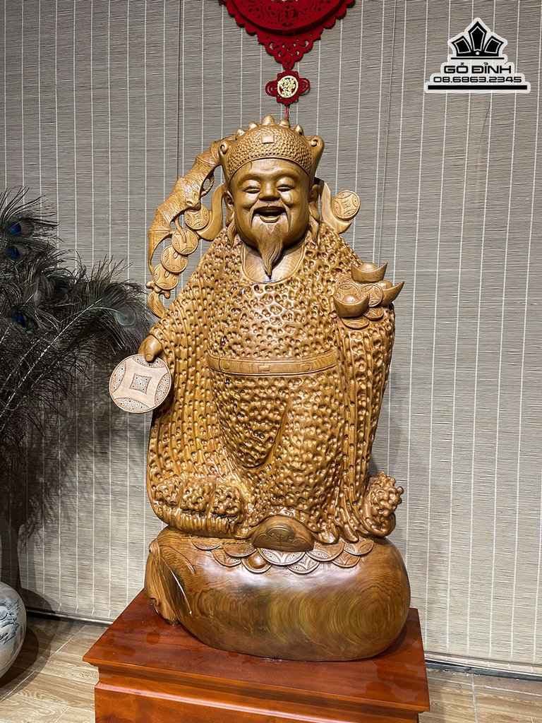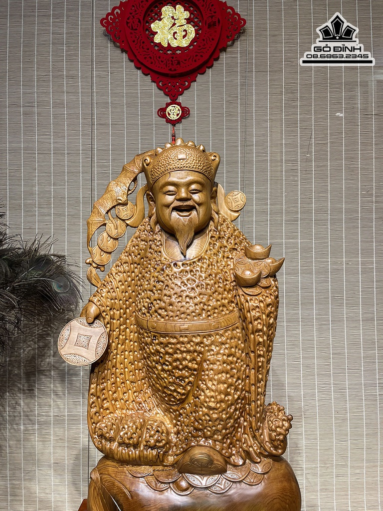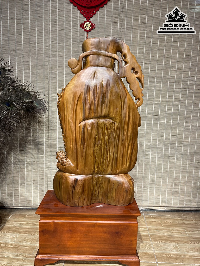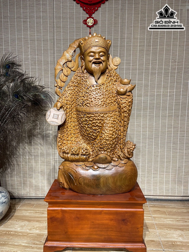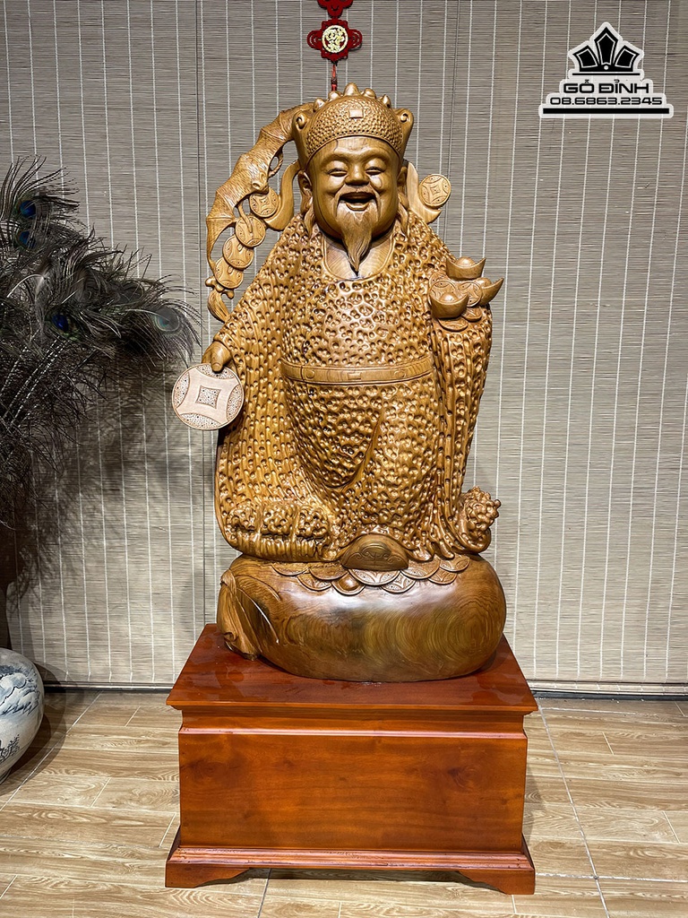 Tượng Thần Tài Gỗ Ngọc Am Cao 88 Ngang 46 Sâu 20 Cả Kỷ 118 (cm)