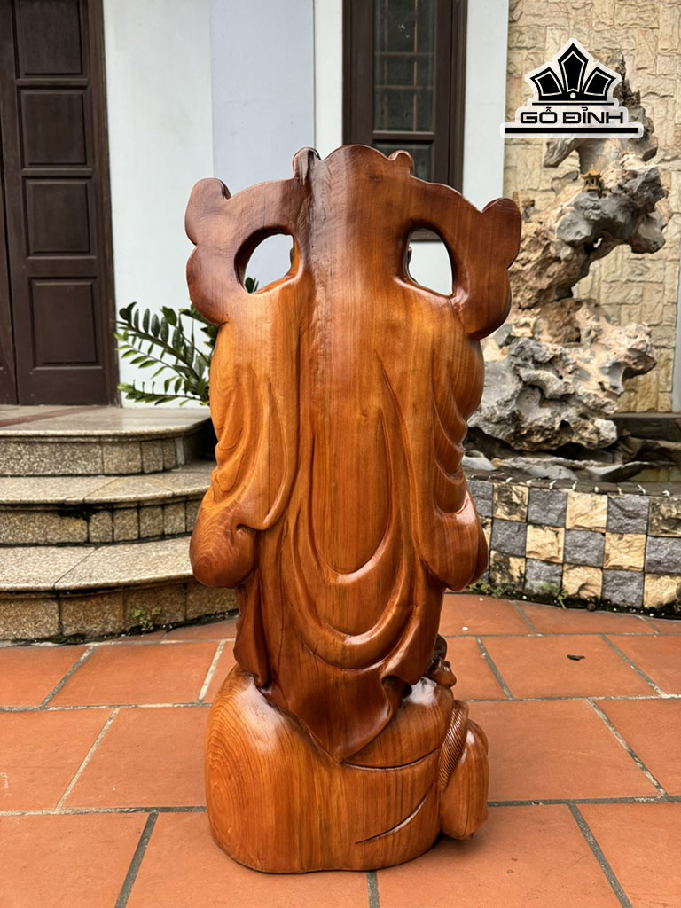 Tượng Thần Tài Gỗ Ngọc Am Cao 93 Ngang 42 Sâu 31 (cm)