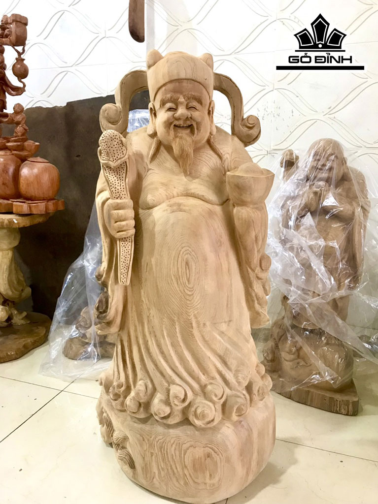 Tượng Thần Tài Gỗ Ngọc Am Cao 95 Ngang 46 Sâu 27 (cm)