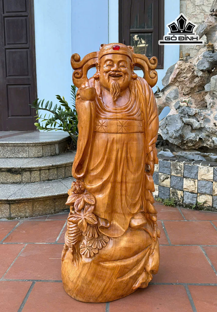 Tượng Thần Tài Gỗ Ngọc Am Cao 97 Ngang 39 Sâu 22 (cm)