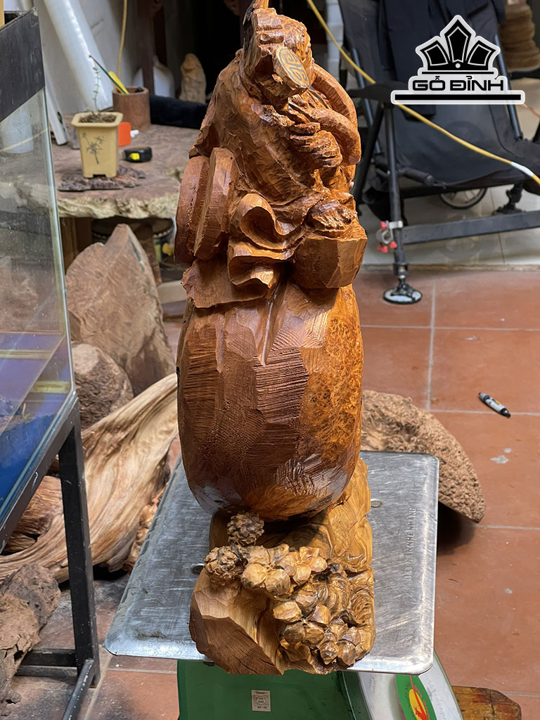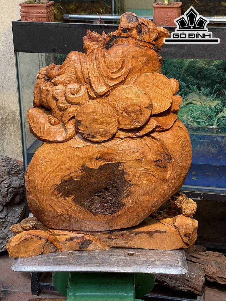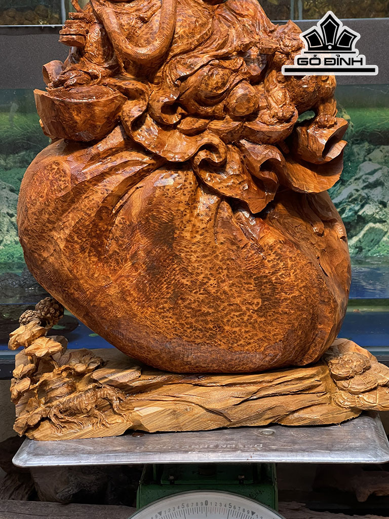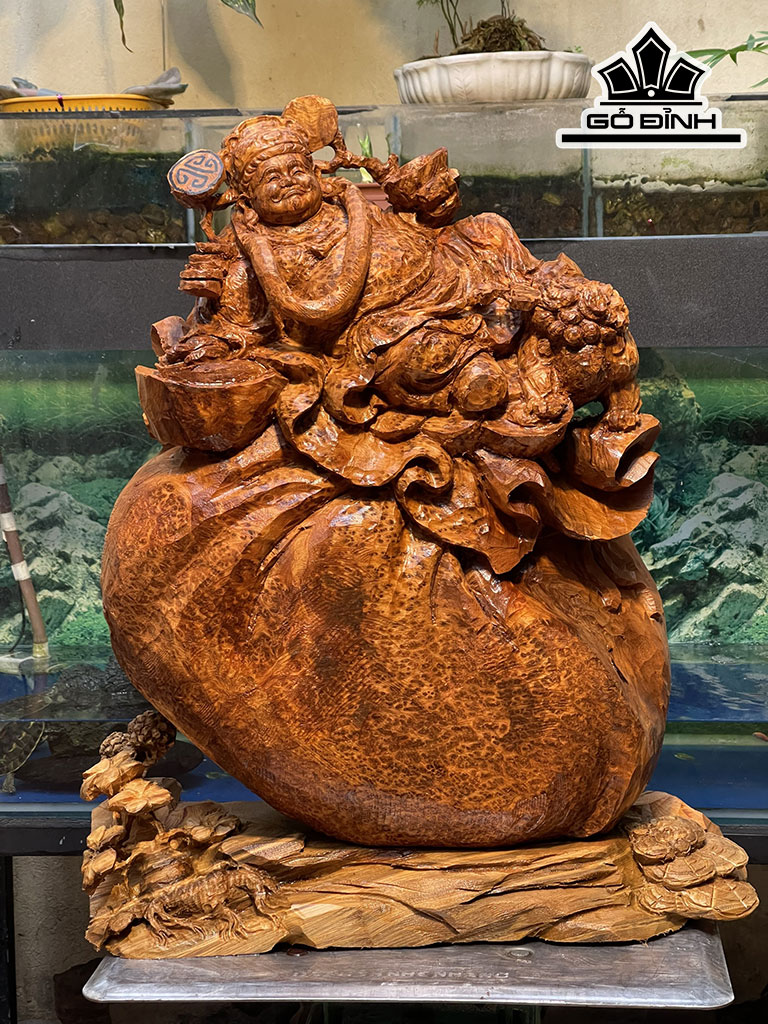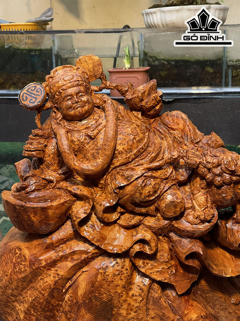 Tượng Thần Tài Gỗ Nu Ngọc Am Cao 52 Ngang 43 Sâu 18 (cm)