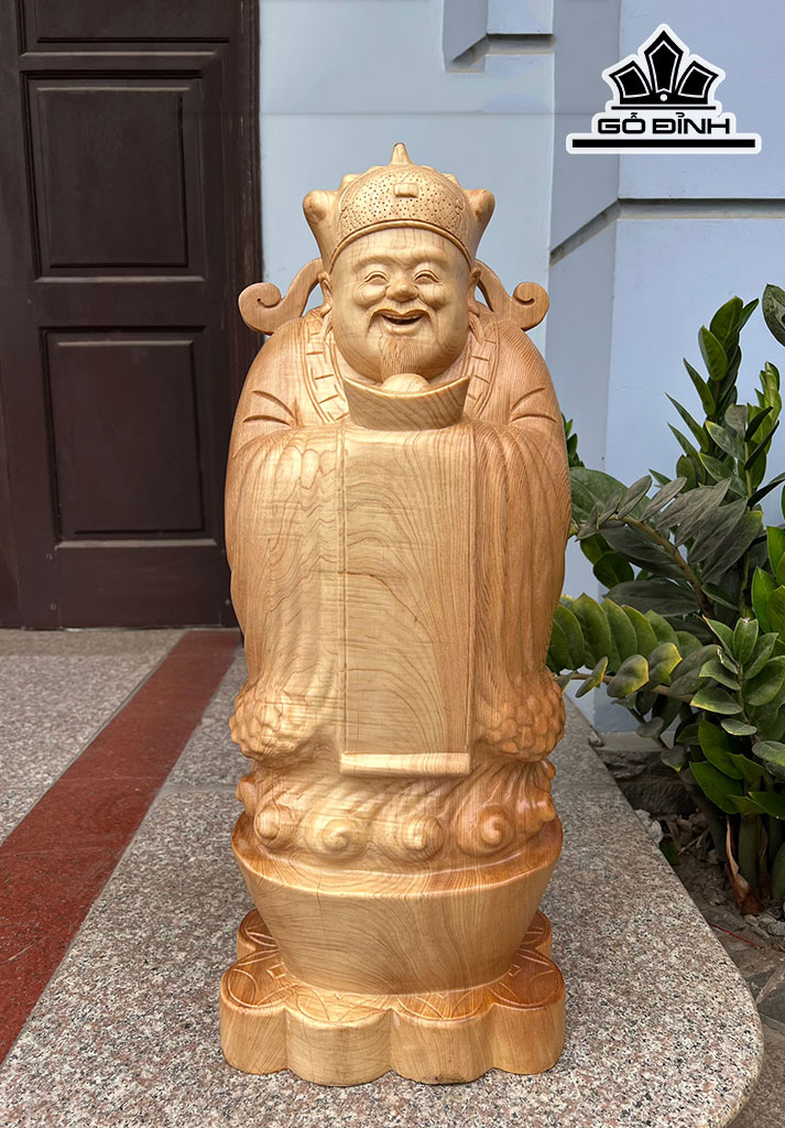Tượng Thần Tài Gỗ Pơ Mu Cao 70 Ngang 28 Sâu 18 (cm)